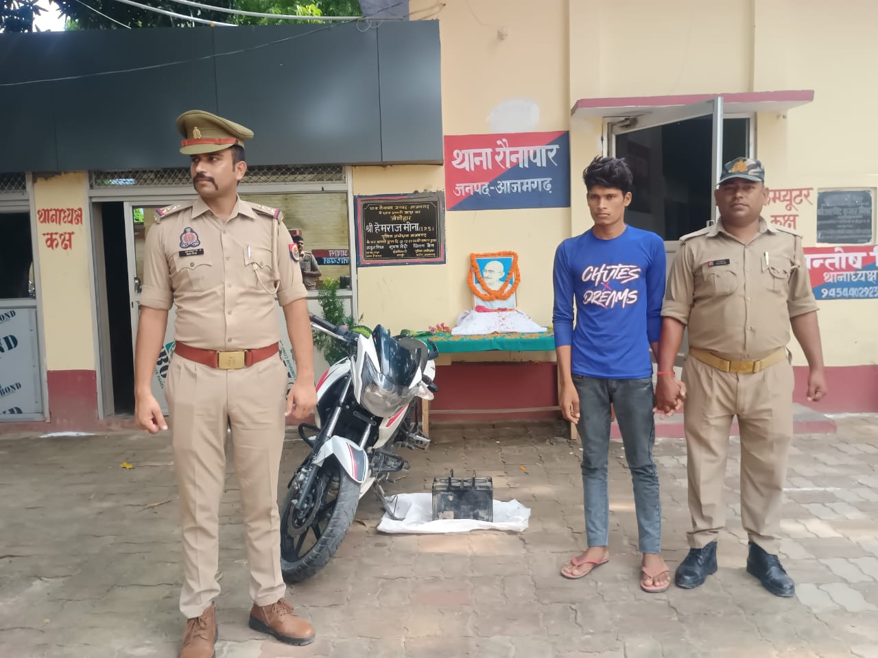 आज़मगढ़: चोरी की बैटरी और मोटरसाइकिल के साथ एक अभियुक्त गिरफ्तार